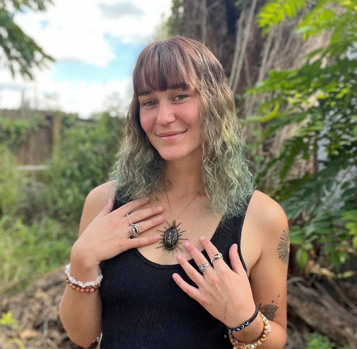 Sara Carreau is a visionary based out of Sanford, FL and the Spiritual Sunflower's best friend and mentor. As SoulSunshine Goods, Sara offers luxury crystal wire wraps, guided meditations, and much more. Sara is a reiki healing master and travels the country to share her healing energy and creations. She teaches wire wrapping, soul painting, and more at an impressive variety of music and art festivals. SoulSunshine Goods specializes in intricate crystal rings, Reiki healing, affirmation paintings, moon guidance, and Native American dream catchers.